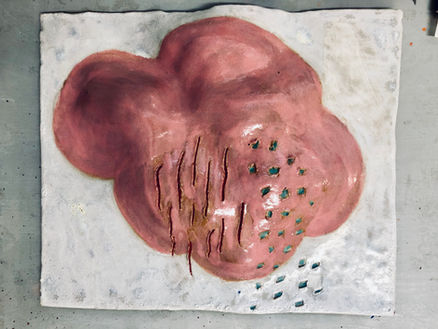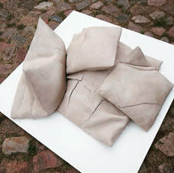 Ist ein Skulpturen Ensemble von vier Kissen geformt aus 50 kg frischem Ton. Die zur Ausstellungseröffnung noch feuchte Erdmasse impliziert die Weichheit realer mit Daunen oder Füllwatte gefüllten Kissen. Mich interessieren an dem Bild der Kissen das Alltägliche, jeder kennt sie, sie Versprechen eine gewisse Leichtigkeit auch im Hinblick auf den gewünschte Erholung oder den erhofften Schlaf, was durch das Gewicht und Aussehen des bloßen Erdmaterials kontrastiert wird.